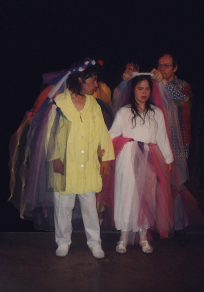 1989-2001 Animation d’un atelier théâtre avec l’association L’Aspirale au sein du CAT Marsoulan à Montreuil, avec réalisation d’un spectacle en fin d’année et de plusieurs créations collectives en théâtre, marionnettes, musique et sculpture parmi lesquelles :