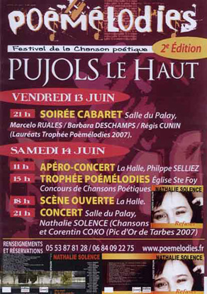 Festival Poèmélodies, Pujols (47), 2008, 2009