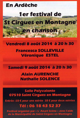Festival Chanson, L’Anart Scène, St-Cirgues-en-Montagne (07), 2014