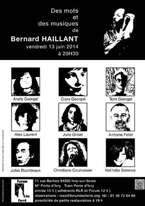 Hommage à Bernard Haillant, Théâtre du Garde-chasse (Les Lilas), 2002 – Vingtième Théâtre (Paris), 2007 – Forum Léo Ferré (Ivry), 2013