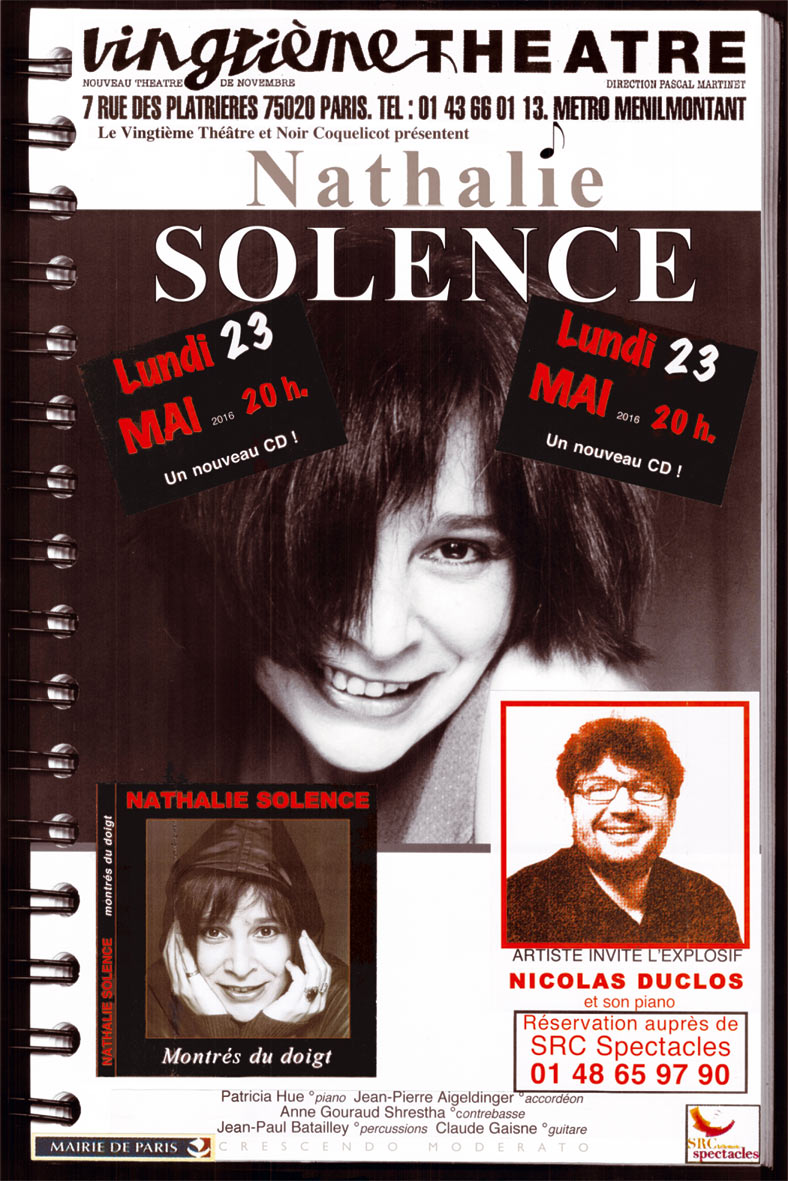 Le Vingtième Théâtre (2011, 2014, 2015, 2016) – Le Théâtre Clavel (2017-2018) – L’Européen (2011, 2015) – Le MagiqueLa Librairie Publico avec l’association Mots et Musiques (2015, 2018) – La Vieille GrilleLe LimonaireLa Mad Pride, Place de la Bastille (2015) – L’Autobus en chansons (aller retour La Bastille-La Concorde,) 2017 et 2018 – Le Trou Noir (2017, 2018) – La Coulée douce – Le Connétable – La Galerie Feuillantine, Exposition José Ricketts (2017) – Le Moulin à Café – Le Théâtre du Lucernaire (2017) – Le Café de la Mairie, Place Saint-Sulpice…